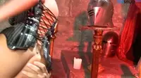 The scene opened with a steamy embrace between the couple, their passion for each other evident in the way their hands roamed freely over each other's bodies.The brunette's plump tits spilled out of her lacy bra as she pushed up against her lover's chest, her nipples hardening under his touch.Their tongues danced a frenzied tango as they explored each other's mouths, sharing the heat that had been building between them all day long.His hands cupped the cheeks of her plump buttocks, his fingers digging in slightly, leaving no mistake as to who owned this sultry little number.His hips ground against her shaved cunt, rubbing her clit through their clothes, her labia swollen and wanting more of his touch.The sensation had them both on the brink of climax as they kissed desperately, fueled by a passion that couldn't be contained in any one moment.They moved to the bedroom, discarding their clothes like so many unwanted gifts.Her body was a work of art – a busty vision with nipples that hardened at his slightest touch and hips that begged for his attention.Her tits bounced playfully as they moved through the room together, each movement drawing them closer to the inevitable release of their pent-up desire.He took her from behind in a doggystyle position, entering her tight cunt with an assertive yet gentle grace.The rhythm built and swelled between them as she reached down, her fingers dipping into her eager snatch, stroking her clit while he filled her in every way she could want.Their moans and gasps echoed off the walls, mingling together to form a beautiful and filthy symphony of carnal lust.He buried himself deep inside her, their hips slapping against one another in a rhythmic syncopation.Her orgasms came in quick succession as his fingers continued to play at her swollen clit while his thick cock pounded into her cunt.Her walls rippled and pulsated with the intensity of their passion, leaving them both breathless but still eager for more.As she reached the pinnacle of pleasure, her body convulsing wildly beneath him, he felt himself close to the edge, unable to resist the fun of her climax.With one last powerful thrust and a grunt of ecstatic exertion, his cum splattered into her cunt while she clenched tightly around his cock.Their bodies quaked from the aftershocks, leaving them panting in the afterglow of their intense release.The brunette collapsed onto the bed, her tits bouncing slightly as they came to rest on the mattress beneath her.He couldn't resist a playful tug on her nipple, eliciting another gasp from her lips before a knowing smile crossed his face.It was just the beginning – their wild and passionate journey together had only just begun.